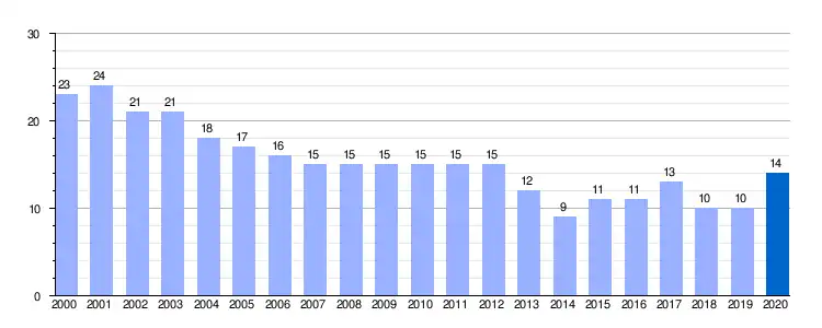Gráfica de evolución demográfica de Valles de Valdavia entre 2000 y 2020 |
