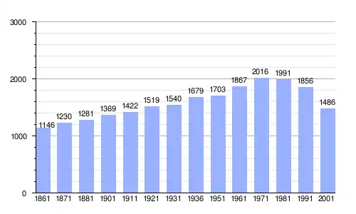 Gráfica de evolución demográfica de Vallesaccarda entre 1861 y 2001 |