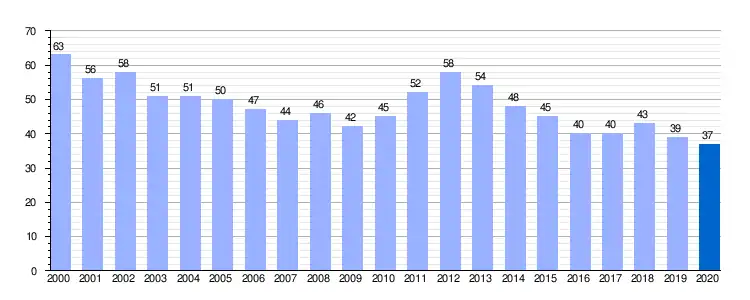 Gráfica de evolución demográfica de Valoria de Aguilar entre 2000 y 2020 |