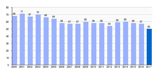 Gráfica de evolución demográfica de Valparaíso[7] entre 2000 y 2017 |