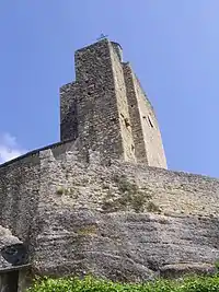 Iglesia semi-rupestre románica del siglo X, también denominada Saint-Pierre o Saint-Michel en algunas fuentes atendiendo a sus capillas, parcialmente construida en una roca.