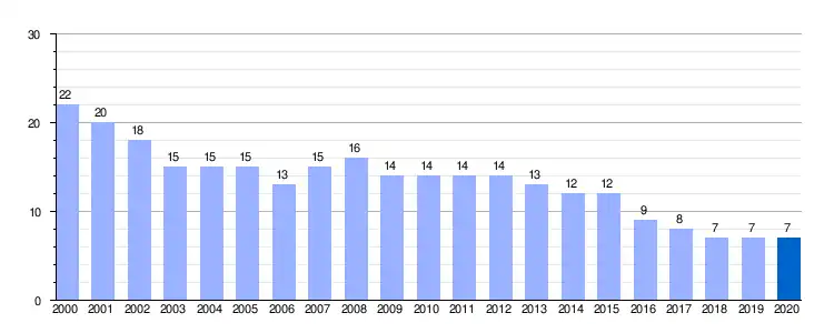 Gráfica de evolución demográfica de Valsadornín entre 2000 y 2020 |
