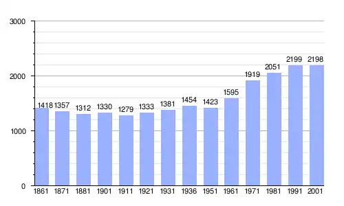 Gráfica de evolución demográfica de Valtournenche entre 1861 y 2001 |