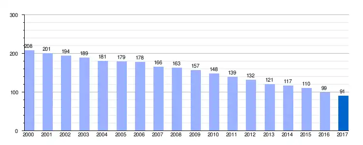 Gráfica de evolución demográfica de Valtuille de Arriba entre 2000 y 2017 |