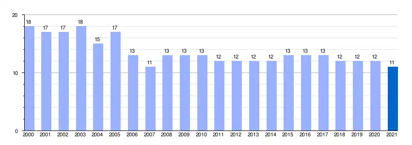Gráfica de evolución demográfica de Valverdín[3] entre 2000 y 2021 |