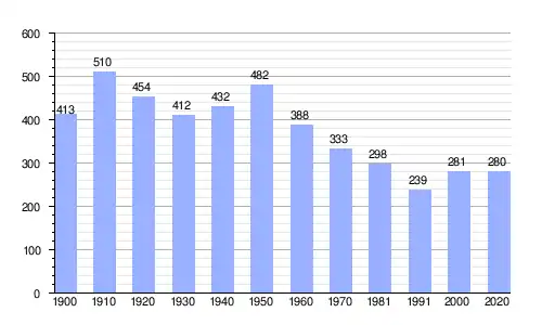 Gráfica de evolución demográfica de Valverdón entre 1900 y 2020 |