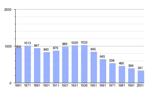 Gráfica de evolución demográfica de Valverde entre 1861 y 2001 |