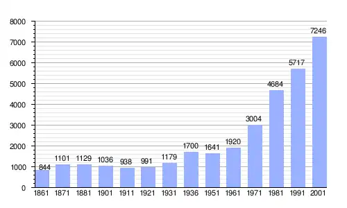 Gráfica de evolución demográfica de Valverde entre 1861 y 2001 |