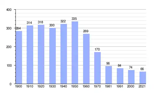 Gráfica de evolución demográfica de Valverde de Valdelacasa entre 1900 y 2021 |