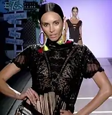 ![]() Pulgarín durante la pasarela de Agua Bendita en Colombiamoda 2016. | ||