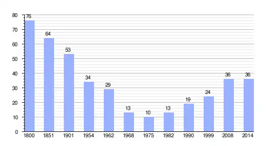 Gráfica de evolución demográfica de Varessia entre 1800 y 2014 |