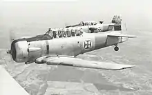 North American T-6G de la Fuerza Aérea Portuguesa en un vuelo de entrenamiento, en la década de 1960.