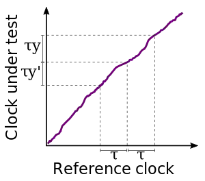 donde es la lectura del reloj (en segundos) medida en el momento , o con la serie temporal de frecuencia media fraccionaria