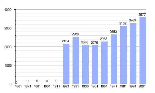 Gráfica de evolución demográfica de Varna entre 1861 y 2001 |