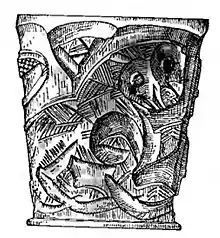 - Imagen de un cáliz (¿o un relicario?) en Lierke. Las muescas pueden verse en la imagen del ejemplo del Museo de Corning.