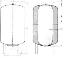 El vaso de expansión cerrado para instalaciones con circuito hermético, consiste en un recipiente de chapa de acero con dos compartimentos, separados por una membrana elástica; uno de ellos contiene aire o nitrógeno y actúa como elemento elástico que absorbe las variaciones de volumen experimentadas por el agua que llena el circuito, el otro compartimento está en contacto con la instalación y por tanto lleno de agua. El vaso se construye normalmente en acero según DIN 17100 y se suelda en atmósfera inerte. La membrana es generalmente de neopreno, de gran elasticidad, resistente al calor y baja permeabilidad a la molécula de dinitrógeno. La cámara de nitrógeno se halla separada del exterior mediante una pequeña válvula antirretorno (obús de neumático), que permite evacuar parte del gas o recargarle en caso de falta de presión.