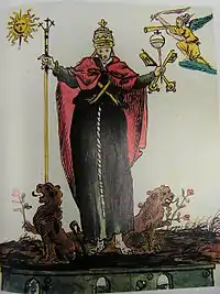 Otro ejemplo es el Papa Pío VII (Barnaba Chiaramonti), que estuvo prisionero en la Francia de Napoleón, es dibujado como un Papa en hábito monacal, que en un puño sostiene una rosa y en el otro una hoz que le amenaza; en el suelo está dibujada la letra B y hay una vista clara de los montes (Chiaramonti) en el fondo.