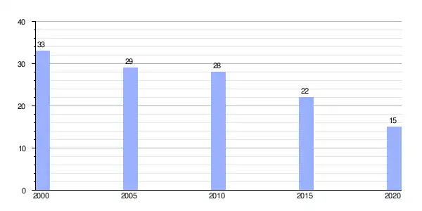 Gráfica de evolución demográfica de Vega de Forcas entre 2000 y 2020 |
