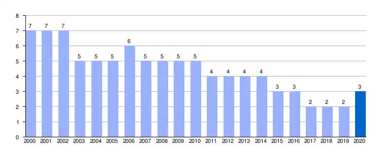Gráfica de evolución demográfica de Vega de Riacos entre 2000 y 2020 |