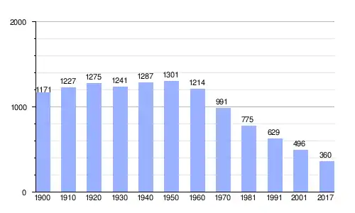 Gráfica de evolución demográfica de Vega de Tera entre 1900 y 2017 |