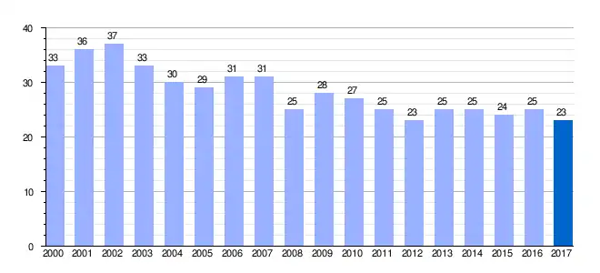 Gráfica de evolución demográfica de Vegas de Domingo Rey[2] entre 2000 y 2017 |