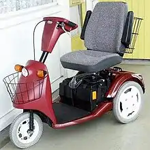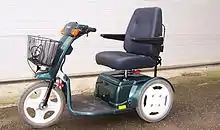 Un scooter de movilidad tiene un asiento montado en un chasis de tres, cuatro o incluso cinco ruedas, un área plana o plancha para los pies, y un manillar de dirección estilo delta en la parte frontal que hace girar una, dos o tres ruedas orientables. El asiento puede girar para permitir el acceso cuando el frente está bloqueado por el manillar. Una buena manera de que las personas discapacitadas se puedan desplazar de un lugar a otro. Dependiendo de las necesidades, podemos encontrar diferentes modelos en el mercado, fabricados por una gran gama de marcas y cada uno con algunas funciones específicas.