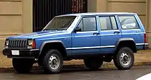 American Motors fabricó el SUV Jeep Wagoneer de tamaño completo con el chasis de un familiar, pero desarrolló una línea monocasco con el Jeep Cherokee (XJ) completamente nueva y estilizada de familiares deportivos compactos de dos y cuatro puertas, que se comercializaron a partir de finales de 1983.[9] Estos también fueron los primeros vehículos utilitarios deportivos compactos estadounidenses de cuatro puertas.[10][11] Si bien los SUV de la competencia eran adaptaciones de pickups compactos, Jeep no tenía uno de estos modelos, por lo que primero diseñaron un SUV, comenzando con una versión de cuatro puertas y presentando una construcción monocasco muy fuerte y liviana como la mayoría de los automóviles de pasajeros, pero también con un diseño de suspensión ligera de "eslabón/bobina" que fue elogiada por la prensa automotriz por su conducción, rendimiento y manejo superiores.[12] El Jeep XJ original combinó la comodidad de un automóvil de pasajeros con un chasis resistente para facilitar la conducción en condiciones difíciles y estableció el segmento de mercado de los SUV modernos. La revista Automobile[13] lo llamó una "obra maestra" del diseño automotriz con espacio para cinco pasajeros y su equipaje.[14]