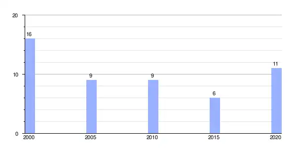 Gráfica de evolución demográfica de Veiga (aldea) entre 2000 y 2020 |