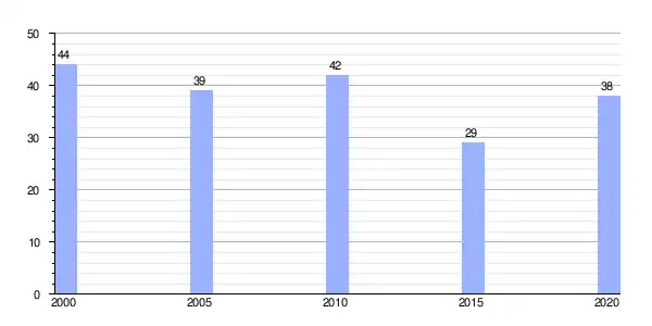 Gráfica de evolución demográfica de Veiga (parroquia) entre 2000 y 2020 |