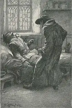 Mientras tanto, Raúl, que ha sido enviado por Athos al ejército del príncipe de Condé, junto con el conde de Guiche, hijo del Mariscal de Grammont, y tras haber combatido en la batalla de Lens, encuentra en el camino a un supuesto fraile, al cual envía a socorrer en sus últimos momentos al antiguo verdugo de Béthune, que está malherido en una posada. Muy pronto el supuesto fraile se revela como John Francis de Winter, el hijo de Milady de Winter, que busca vengarse de los seis (D'Artagnan, Athos, Porthos, Aramis, Lord de Winter y el verdugo de Béthune) que ajusticiaron a su madre. Empieza su venganza apuñalando al moribundo ex verdugo y huyendo a continuación. Grimaud le encuentra con el puñal clavado en el pecho y escucha sus últimas palabras, donde le pide advertir del peligro a Athos y a los demás. Ante ello, Grimaud vuelve a París.