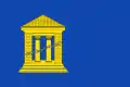 - Cuadrilongo de base circular. En fondo de azur, templo romano en oro, cargado con cadena, de plata. Al timbre, Corona Real Cerrada.