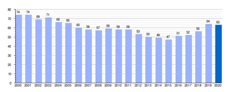 Gráfica de evolución demográfica de Velilla de la Peña entre 2000 y 2020 |