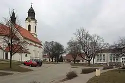 Se encuentra ubicada al sur de la región, a poca distancia al sur de Brno, y cerca de la orilla del río Dyje —un afluente del río Morava que, a su vez, lo es del Danubio— y de la frontera con Austria y Eslovaquia.[1]