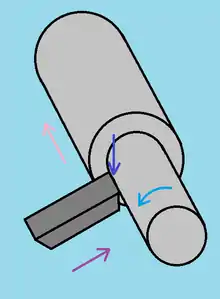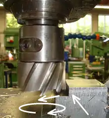 La velocidad de avance es un término utilizado en la tecnología de fabricación. Es la velocidad relativa instantánea con la que una herramienta (en máquinas tales como máquinas de fresado, máquinas de escariar, tornos ) se enfrenta el material para ser eliminado, es decir, la velocidad del movimiento de corte. Se calcula a partir de la trayectoria recorrida por la herramienta o la pieza de trabajo en la dirección de alimentación en un minuto.[1] Se expresa en metros por minuto.
