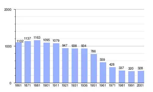 Gráfica de evolución demográfica de Vendrogno entre 1861 y 2001 |