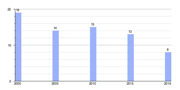 Gráfica de evolución demográfica de Veneira de Roques entre 2000 y 2019