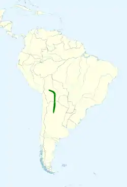 Se distribuye en las selvas del centro oeste y sur de Bolivia, en los departamentos de: Cochabamba, Santa Cruz, Chuquisaca, y Tarija, alcanzando por el sur hasta el noroeste de la Argentina, en las provincias de Salta, Jujuy, Tucumán, y Catamarca.