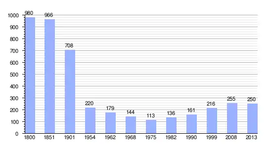 Gráfica de evolución demográfica de Ventalon-en-Cévennes entre 1800 y 2013 |