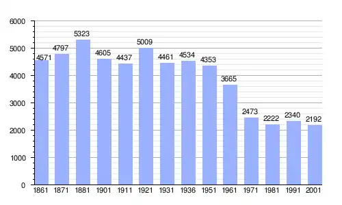 Gráfica de evolución demográfica de Ventimiglia di Sicilia entre 1861 y 2001 |