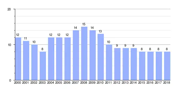 Gráfica de evolución demográfica de Ventorrillo entre 2000 y 2018 |