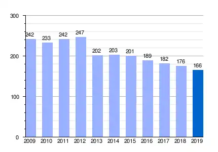 Gráfica de evolución demográfica de V. Balerma (GR) entre 2009 y 2019 |