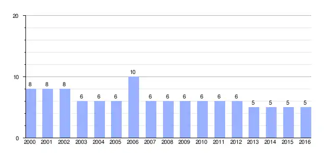 Población de derecho (2000-2016) según los censos de población del INE a 1 de enero de cada año.[1] |