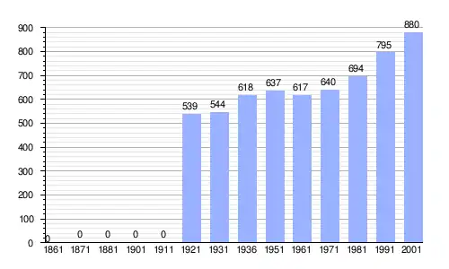 Gráfica de evolución demográfica de Verano entre 1861 y 2001 |