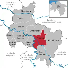![]() ![]() Verden Localización de Verden en Baja Sajonia | ||