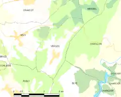 - Situación de Verges (Jura) en un mapa de Francia y de comunas limítrofes (enlace roto disponible en Internet Archive; véase el historial, la primera versión y la última). (en francés)