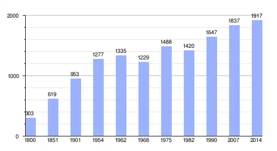 Gráfica de evolución demográfica de Verquigneul entre 1800 y 2014 |