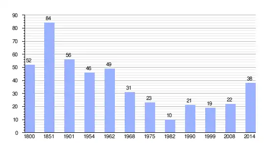 Gráfica de evolución demográfica de Verrières-du-Grosbois entre 1800 y 2014 |