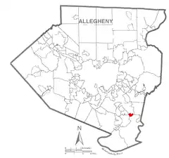 ![]() Ubicación en el condado de Allegheny ![]() Ubicación del condado en Pensilvania ![]() Ubicación de Pensilvania en EE. UU. | ||