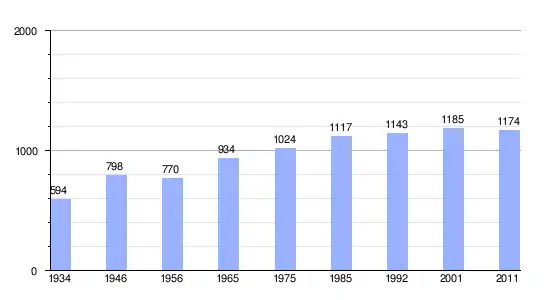 Gráfica de evolución demográfica de Veselínovo entre 1934 y 2011 |