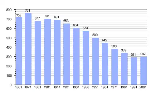 Gráfica de evolución demográfica de Vessalico entre 1861 y 2001 |